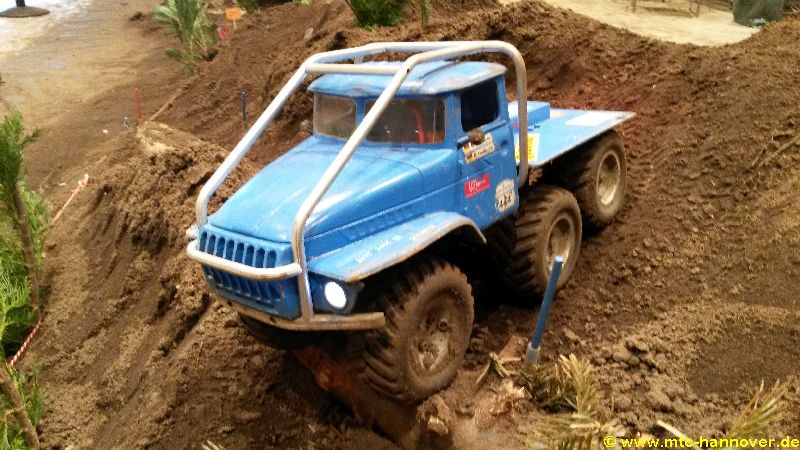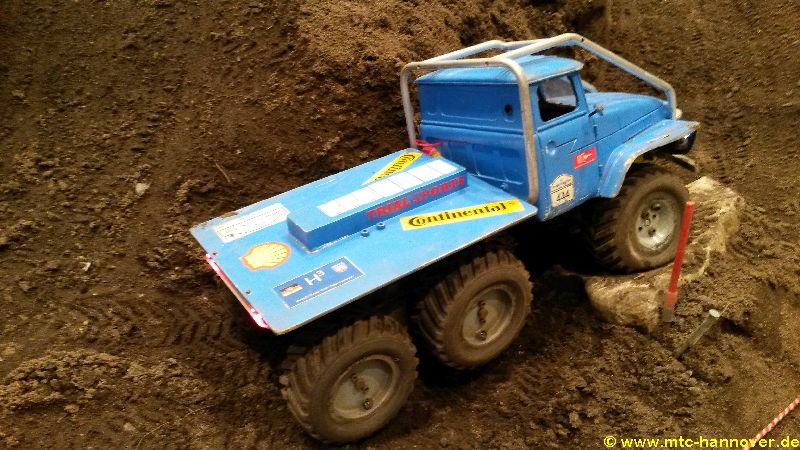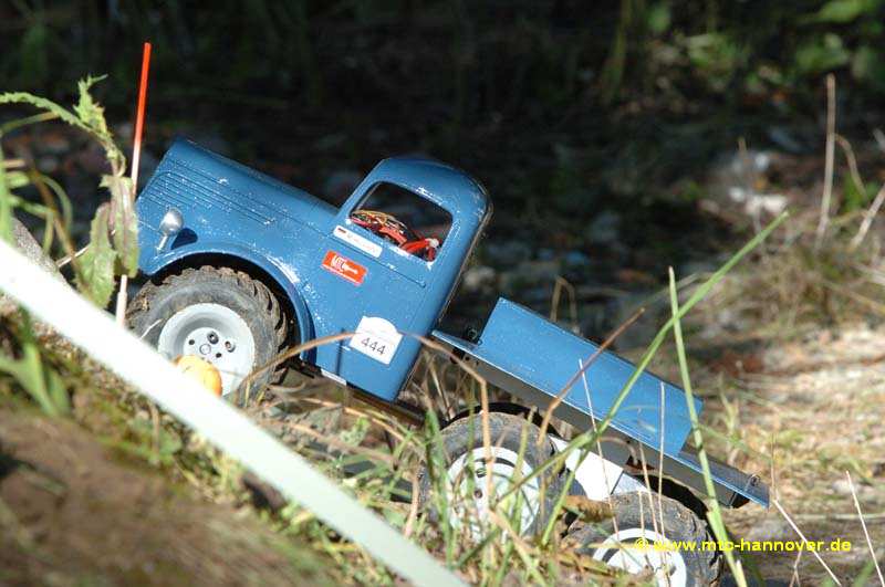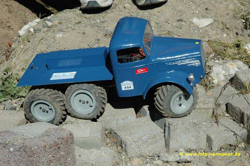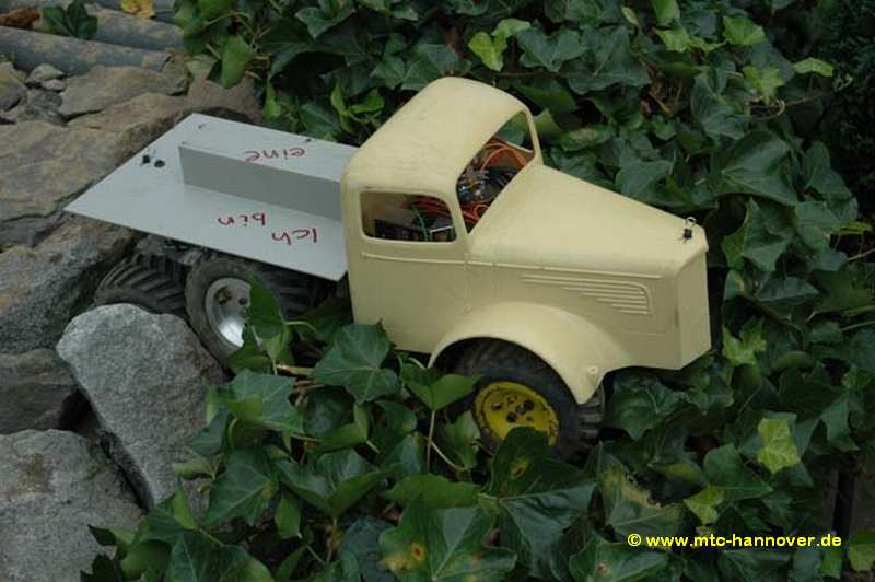 Tja, das ist jetzt eine lange Geschichte! Schon 2005 hatte ich mich entschlossen, einen "neuen" Trialer zu bauen. Es sollte ein 6x6x2 werden. Also begann ich, Komponenten in einer grossen Kiste zu sammeln. Der Neue sollte nicht nur gut durchs Gelände gehen, sondern sich auch etwas von den vielen Bruder-FHs abheben (nicht das ich was gegen Bruder-FHs habe, habe ja selbst jahrelang ein Solches gefahren). Wie dem auch sei: der Zufall spielte mir ein Oldtimer-Fahrerhaus in die Hände, ein MB6600 im Maßstab 1:12 von Bönning. Horst Uffmann hat es bei einem Preisauschreiben gewonnen, aber es passte im Maßstab nicht zu seinem Fuhrpark. Für den Trial-Einsatz war/ist es mit 20 cm Breite OK und einige Millimeter an Breite hat es später auch durch den Einsatz des Dremels auch noch eingebüsst. So war ich schon mal in den Besitz eines Fahrerhauses gelangt, von dem ich dachte, das es im Trial-Zirkus einmalig wäre. Falsch gedacht. In 2006 tauchte Jörg Losert mit genau dem selben Fahrerhaus auf dem Parcours auf, auch ein 6x6x2! Da war ich erstmal baff...aber gut, zwei ähnliche Fahrzeuge sind ja noch kein Massenprodukt.